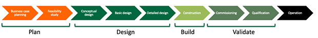 As construction comes to an end with all equipment and systems installed, the final Validate phase of the project can proceed. This phase is aimed at commissioning and qualifying manufacturing equipment, facilities, systems and utilities. It is critical to confirm that all elements of the new facility have been installed appropriately and operate in accordance with specified, pre-defined criteria. A team of commissioning agents may be hired in to work alongside the company’s manufacturing staff, to start up the facility and its equipment, gaining familiarity with the new systems that will be routinely operated after project handover. The project manager coordinates progress during the Validate phase, obtains resources and ensures that a logical sequence of start-up activities is planned and executed. Modifications may be required to successfully complete all qualification and validation tasks. Once completed, the capital project is finished, and the facility is handed over and available for beneficial operation. In addition to the main capital project, there will usually be several supporting operational projects to be executed in parallel, which are key to the successful start-up of the new facility. For example, recruitment of the staff needed to operate the new facility, training, technology transfer from a sending unit, regulatory activities to achieve licensure, supply chain management for raw materials and single use components, contracts for external analytical testing, set up of maintenance and calibration contracts etc. The project manager plays a key role in coordinating these supporting projects to align with the delivery of both the new facility and the overall program delivery strategy.